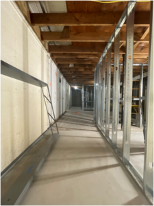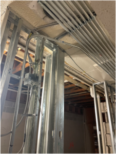 Working on the HVAC ductwork going up.
